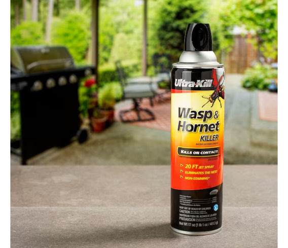 Ultra Kill Wasp and Hornet Spray uses a 20-foot jet spray to kill wasps, hornets, and yellow jackets outdoors on contact—and eliminate their nests. It also kills tent caterpillars, scorpions, and ants.